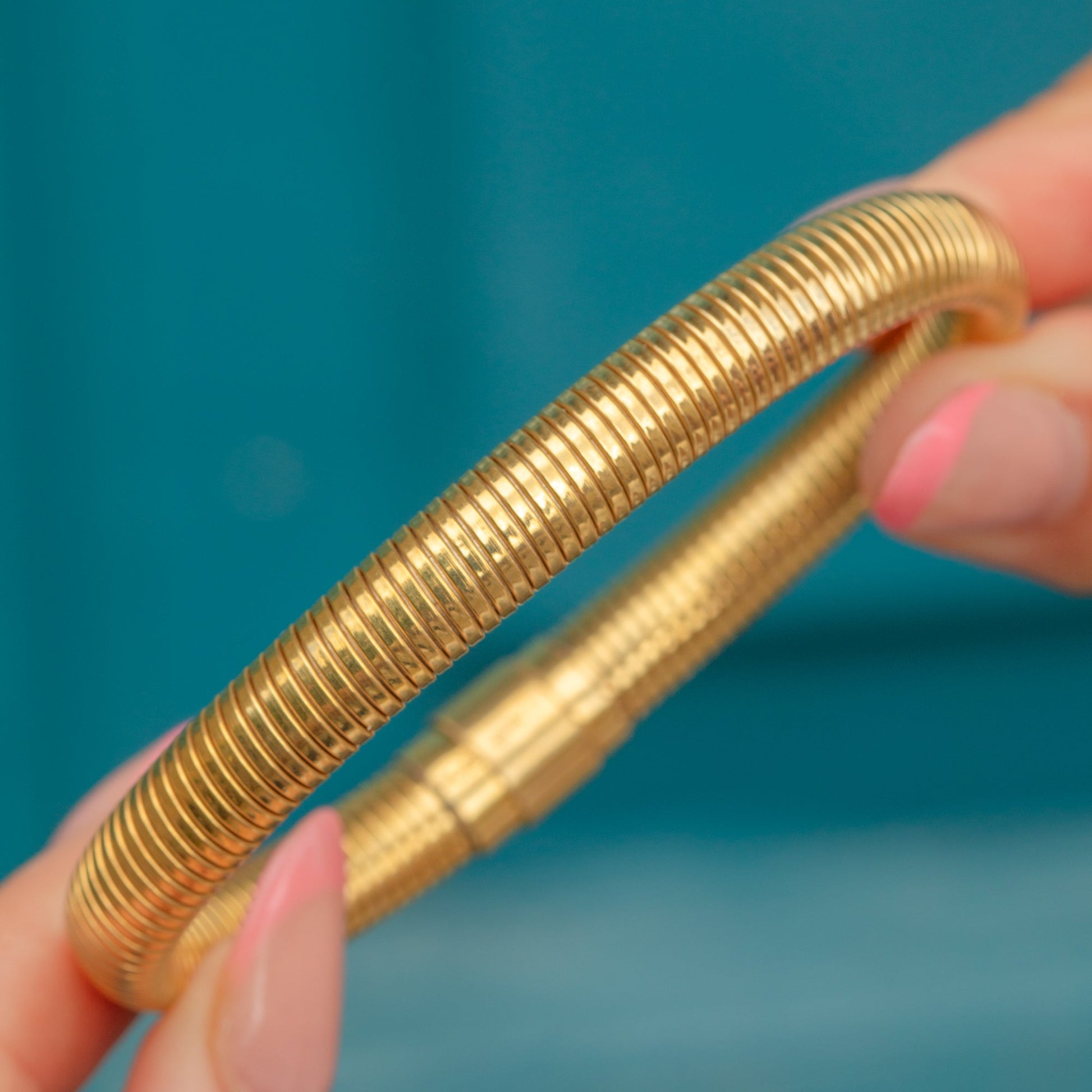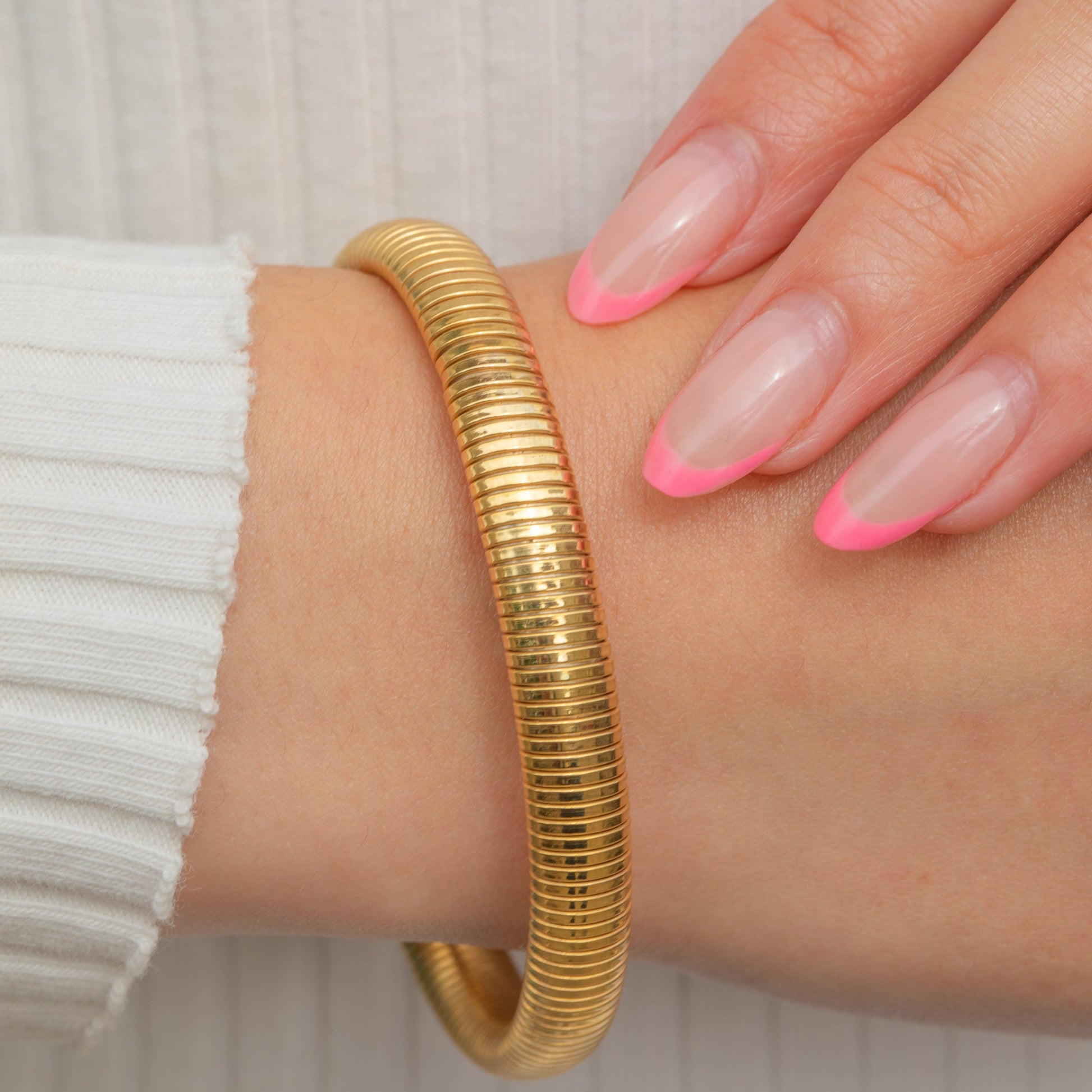Add a touch of glossy Gold to your wrist with this striking 12ct Gold filled gas pipe bracelet!