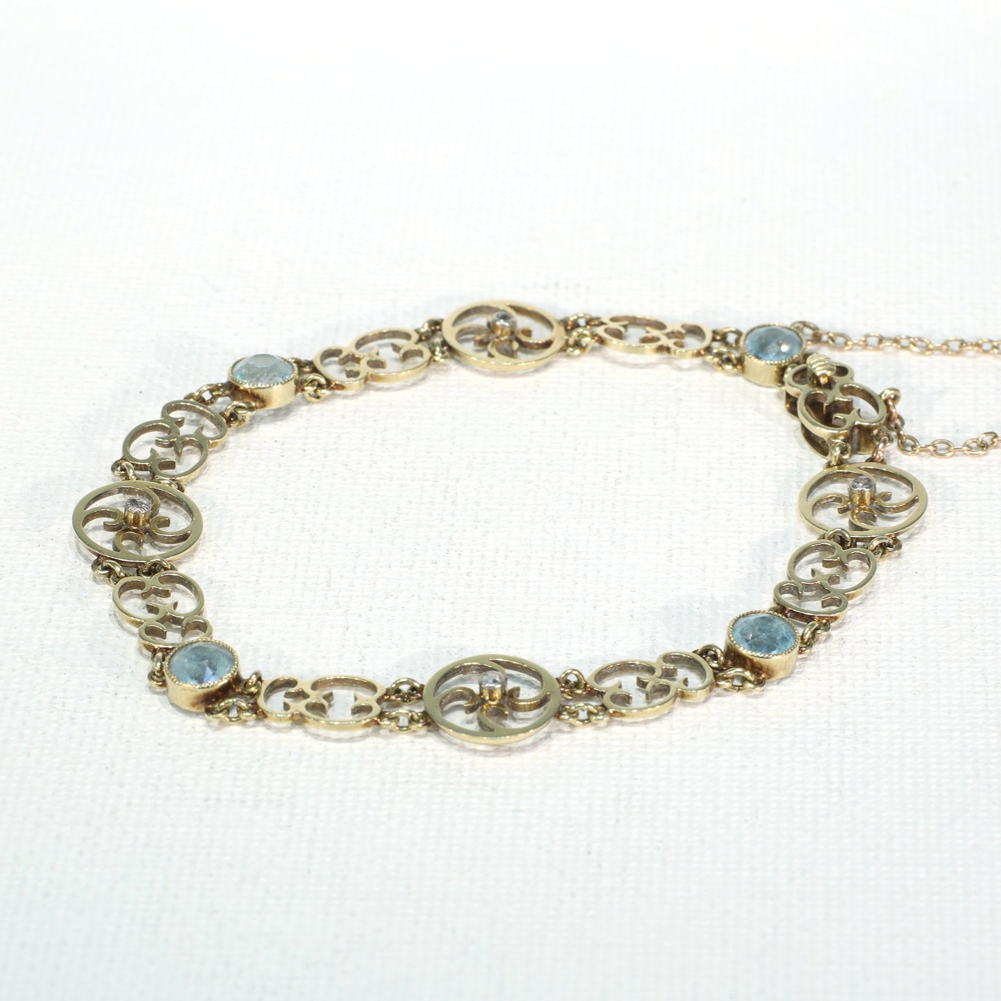 Antique Edwardian Aquamarine Diamond Bracelet 15k Gold English