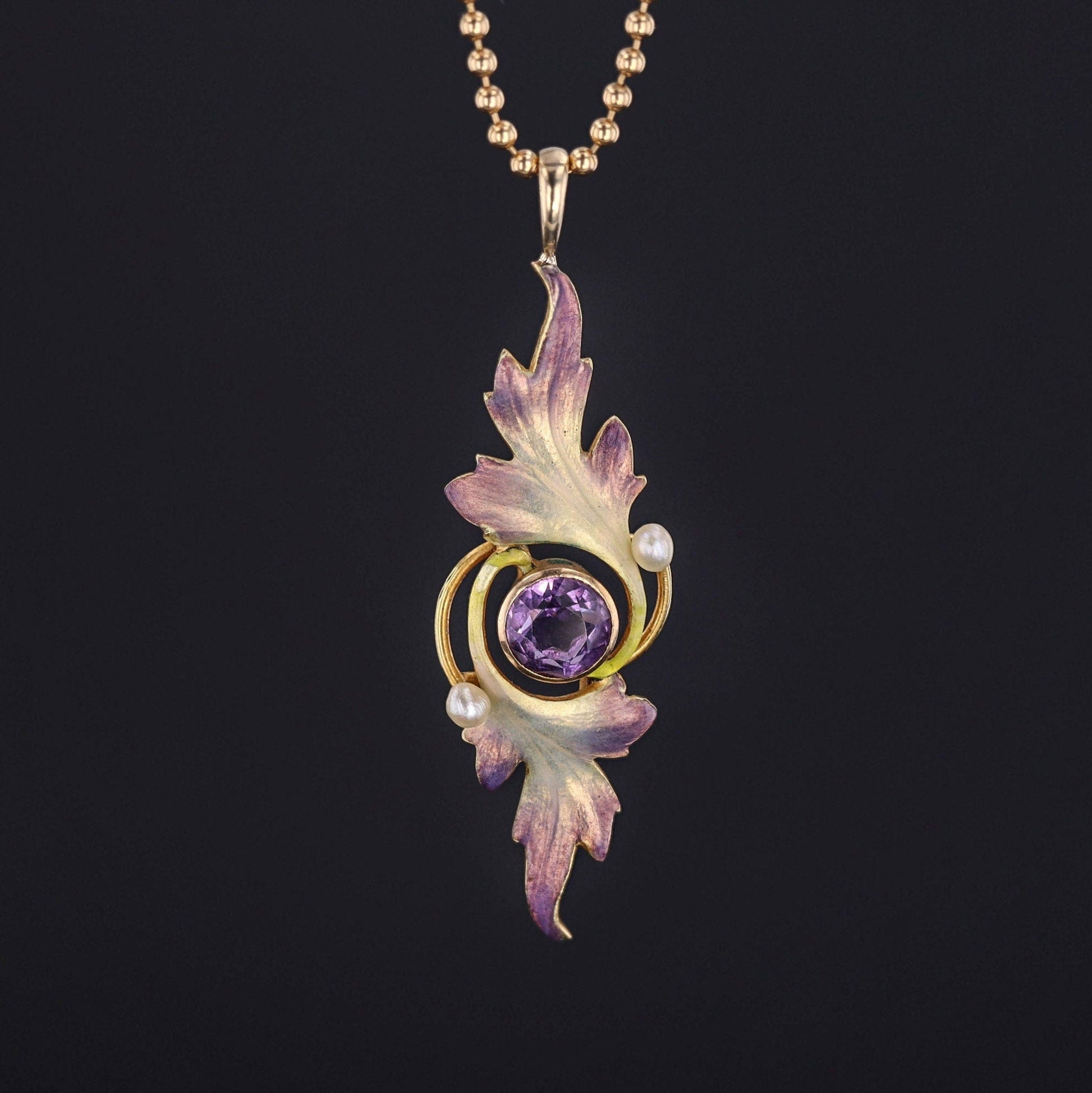 Antique Enamel Pendant | Amethyst & Pearl Pendant
