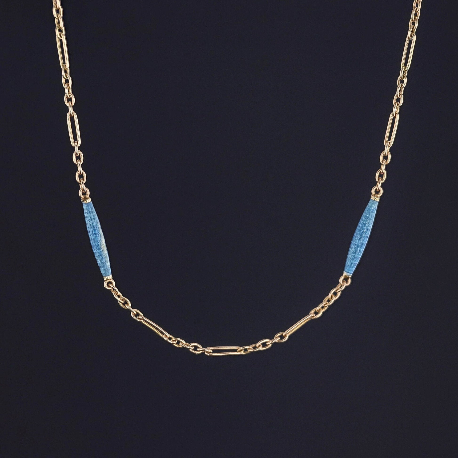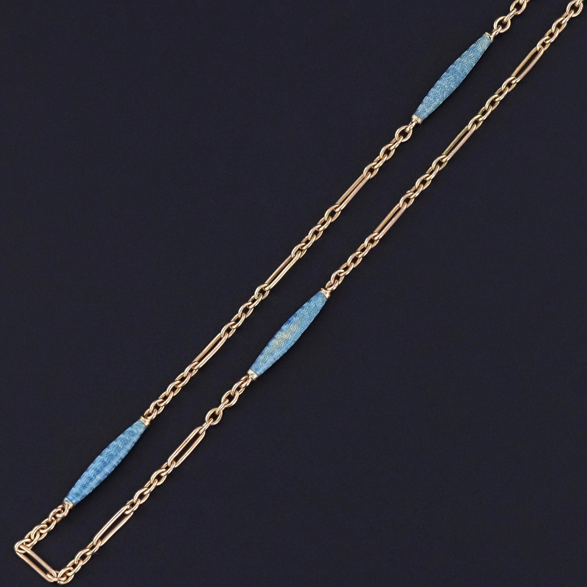 This antique 14k gold chain (circa 1900) features links of blue guilloche enamel.