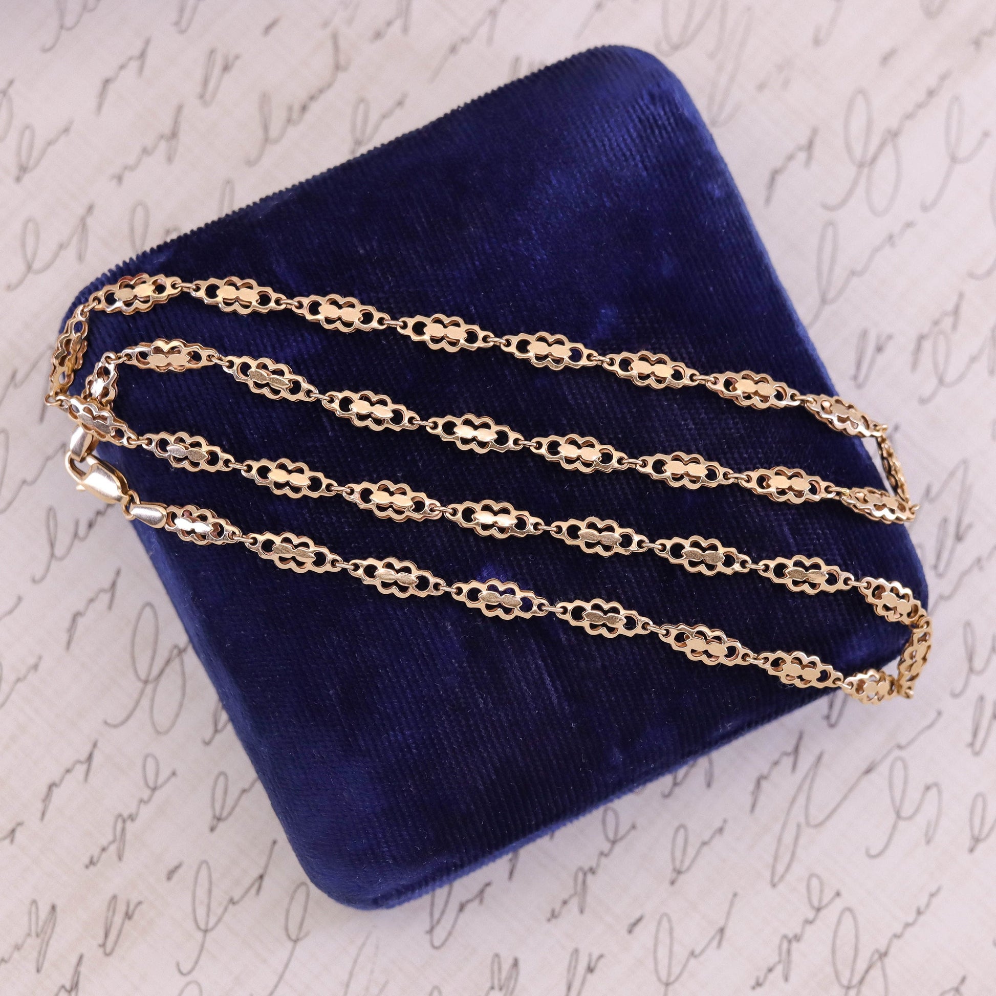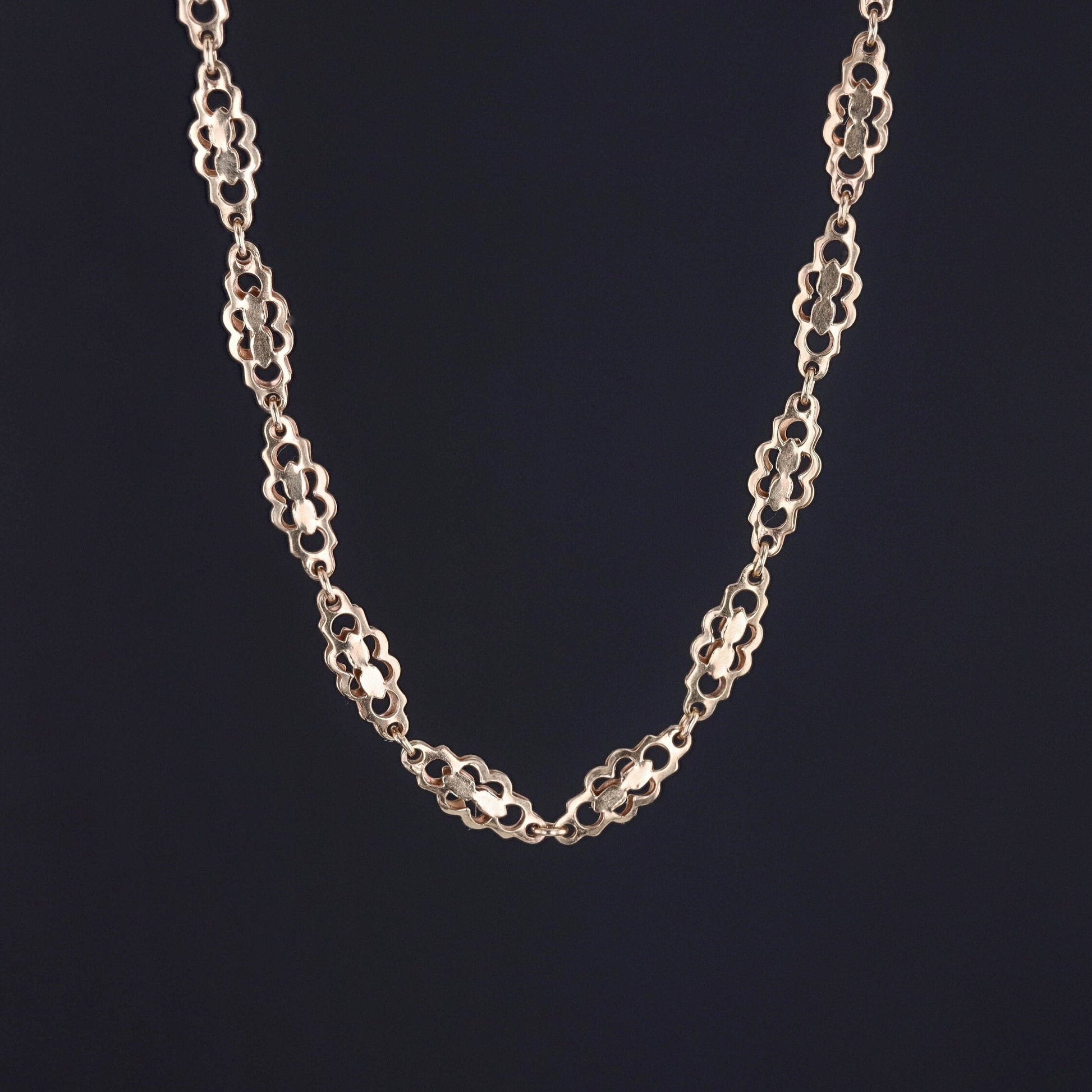 This antique necklace (circa 1890-1900) features fancy links of 9ct gold.