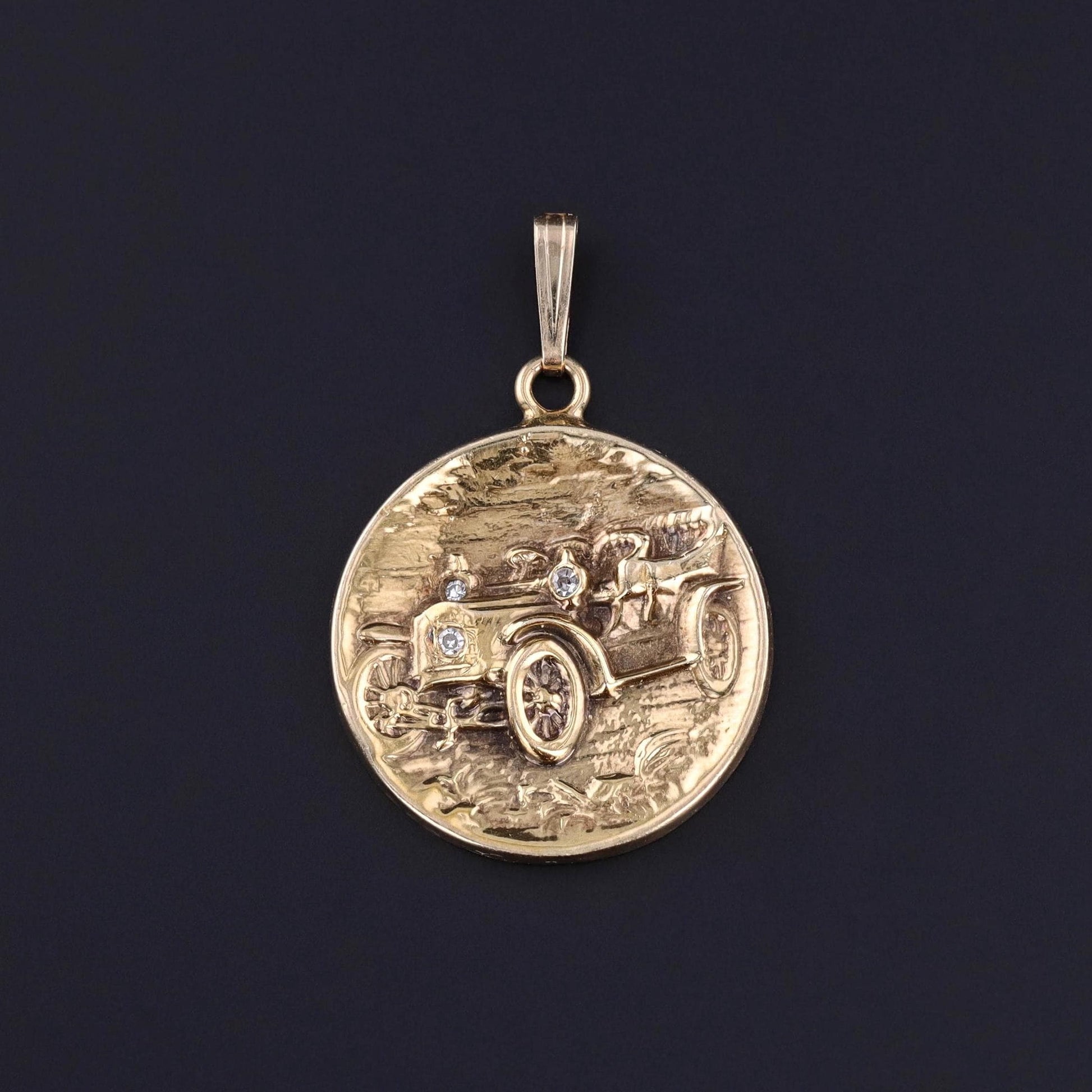 Antique Car Pendant: This antique pendant (c. 1910) depicts a Ford Model B of 14k gold with three diamond accents.