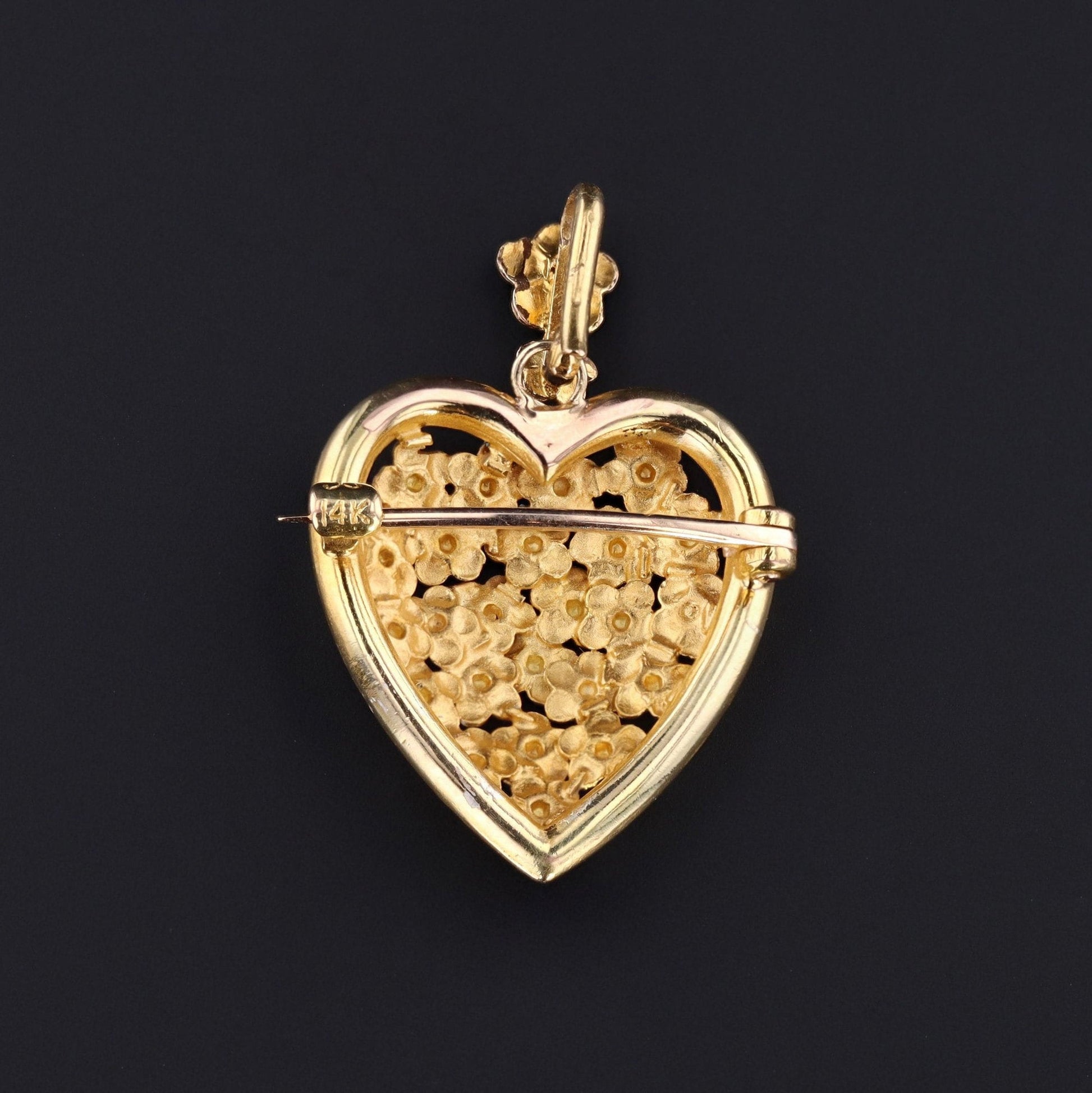 Antique Forget-Me-Not Heart Pendant | 14k Gold Pendant or Brooch