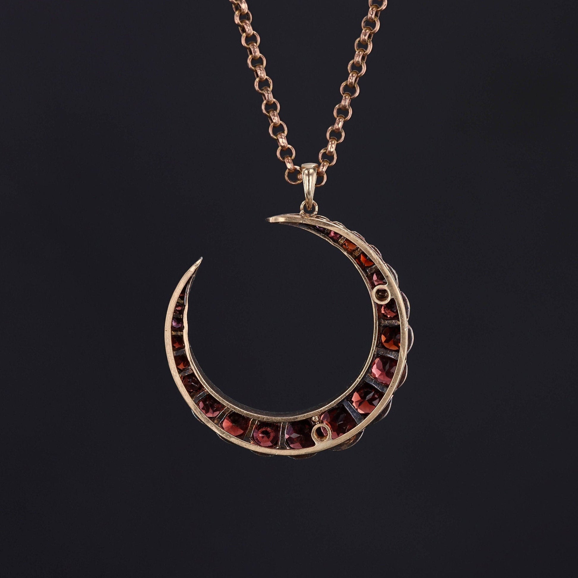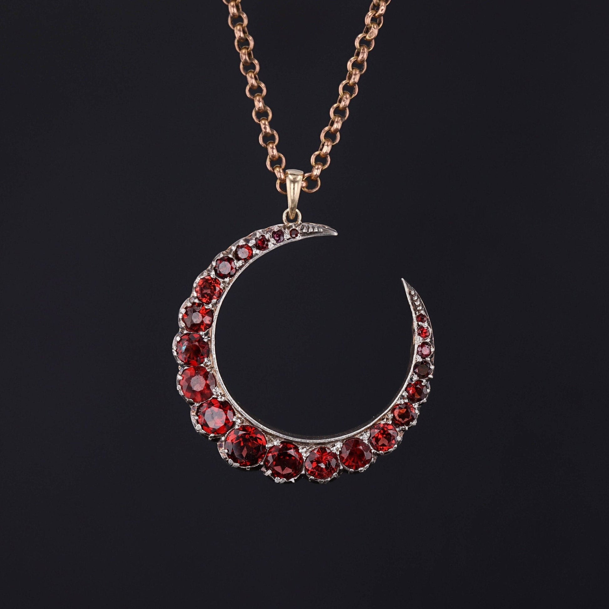 Antique Garnet Crescent Moon | Silver Topped 14k Gold Pendant on Optional 9ct Gold Chain