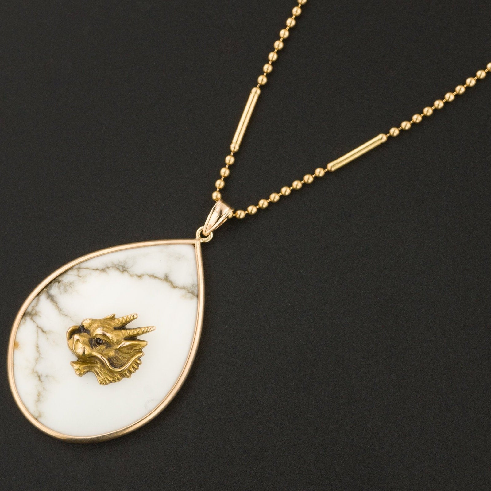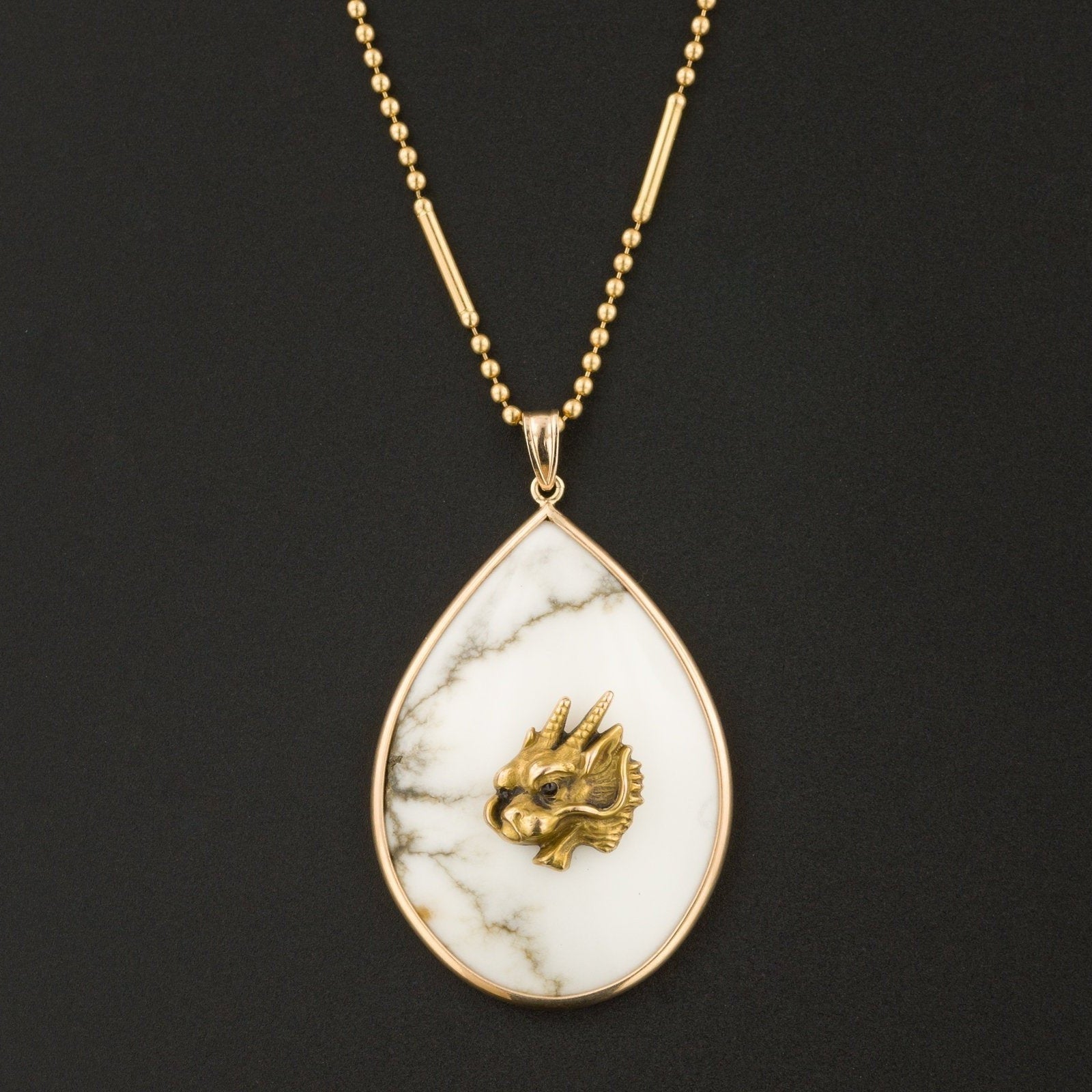 Antique Gold Dragon on Howlite Pendant | 14k Gold Pendant on Optional 14k Chain