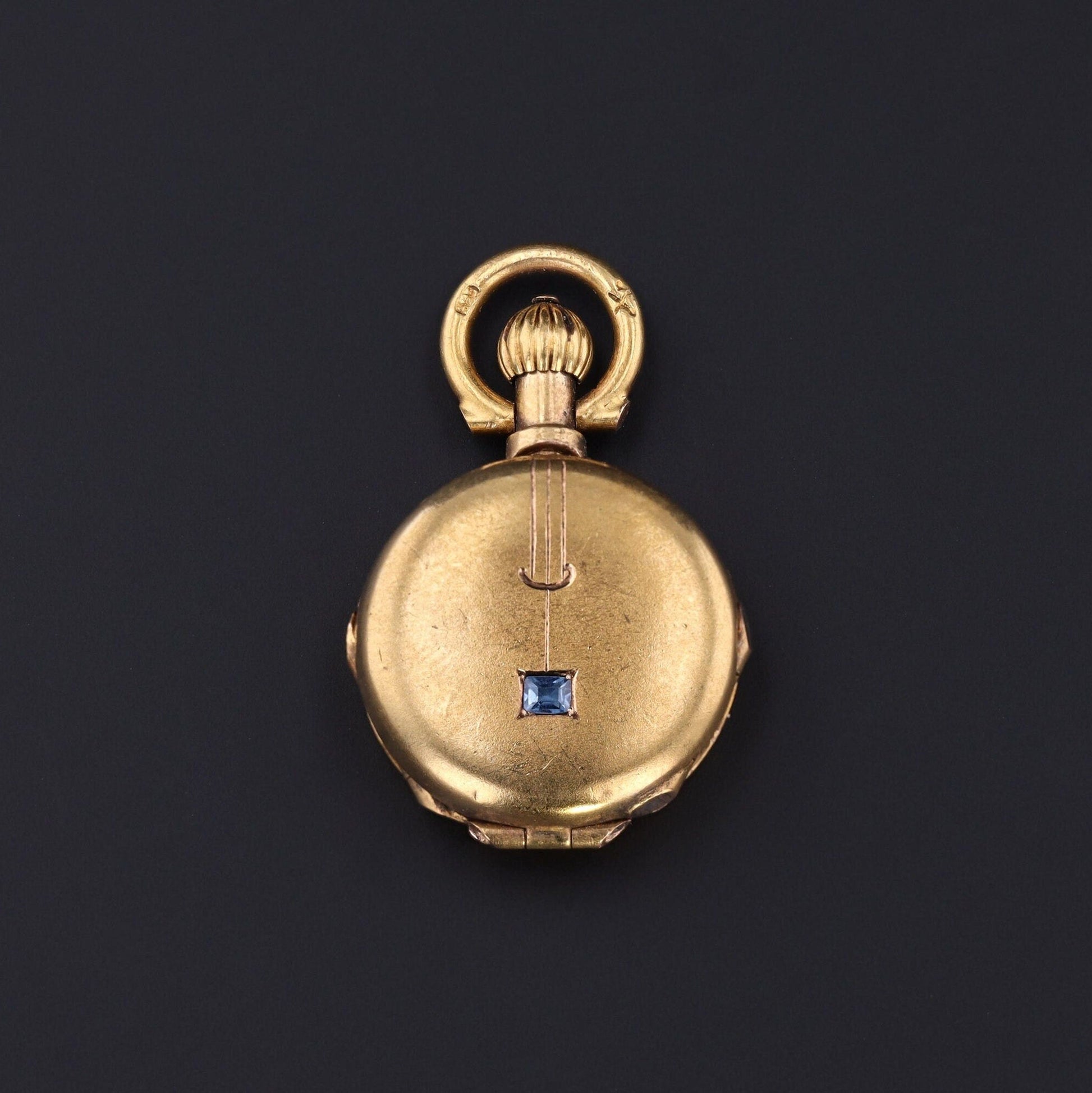 An elegant gold and blue sapphire locket -- perfect for carrying photos of loved ones or other treasured keepsakes close to your heart.