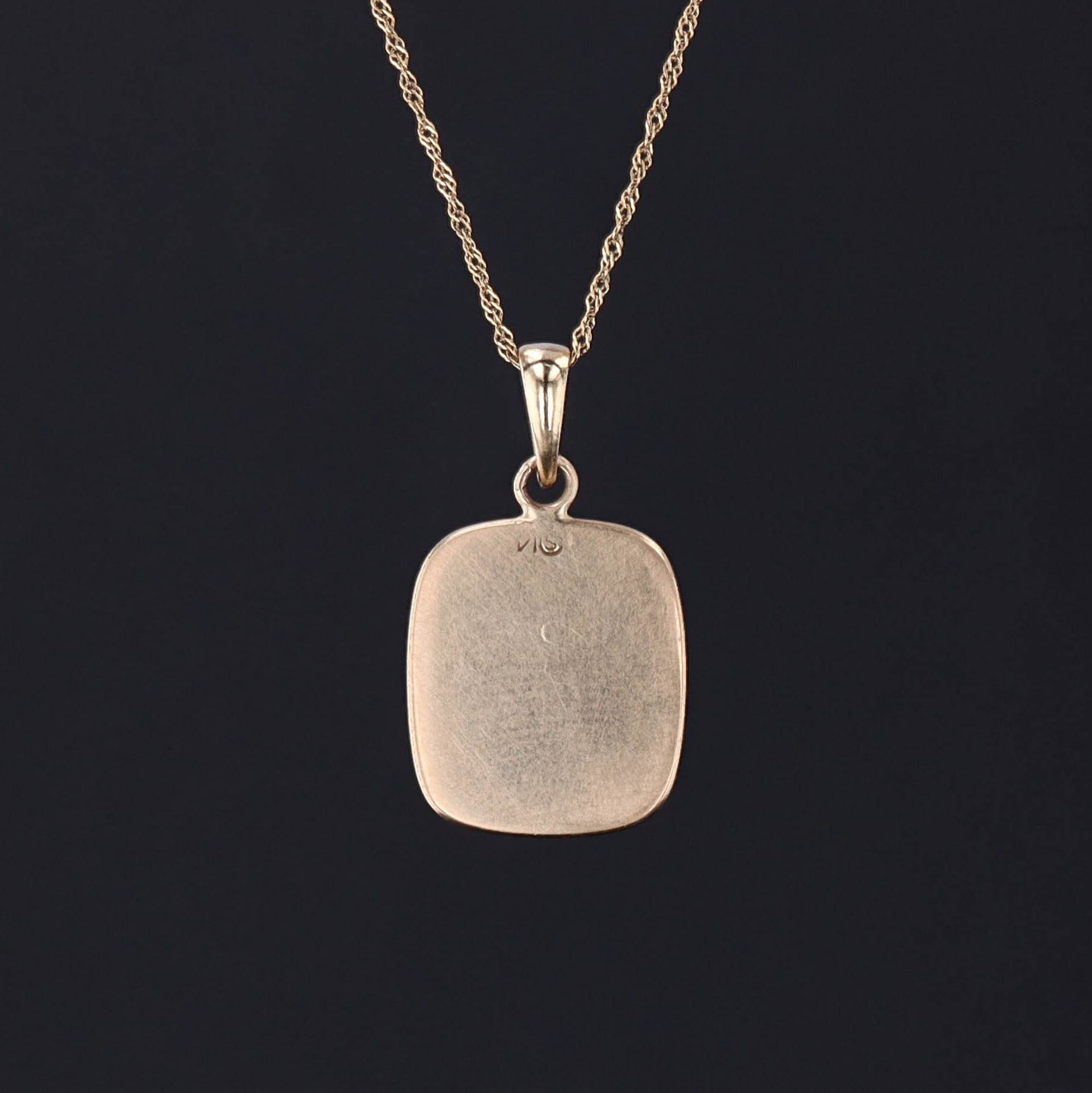 The pendant measures 0.95 inches from the top of the bail to bottom by 0.55 inches wide and is in very good condition. We are providing the option to purchase the pendant with or without the 17.5 inch, 10k gold chain depicted in the photos.
